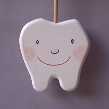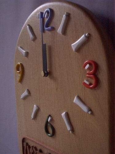 文字盤は「歯ブラシ」と「はみがきこ」、振り子は「歯」のキャラクターです。