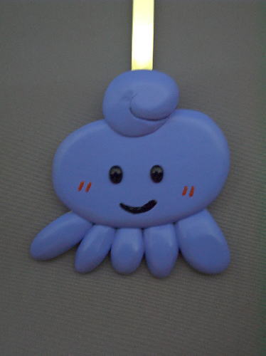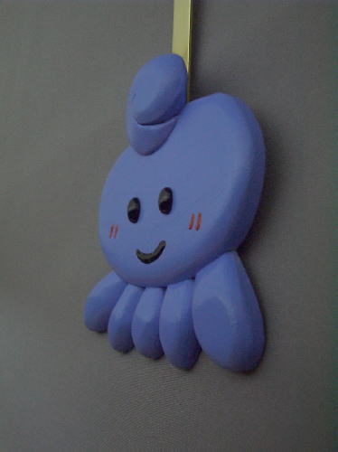 | キャラクターの「くらげちゃん」で振り子をお作りしました。 時計の機械以外はすべて木製です。 |
