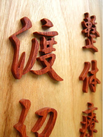 | ひとつひとつ糸鋸で切り抜き、手で磨き上げます。 字体は自由に変更できます。 |