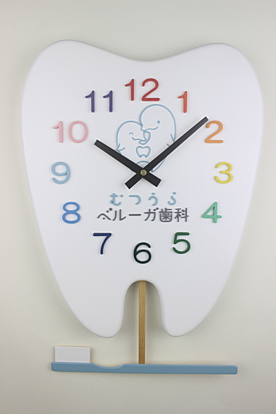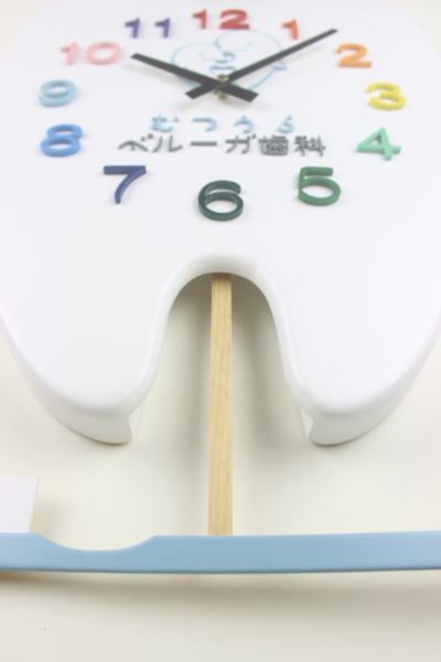 ■歯科医院様への開院祝い:ロゴマークと歯ブラシの振り子時計■