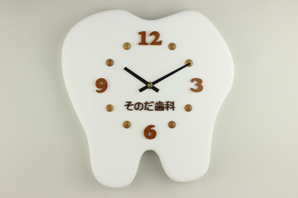 | 歯科医院様への開院祝いの「歯の形をした掛け時計」です。 文字盤などに色を着けるとかわいい感じになります。⇒こちらをご覧下さい。 歯の時計は本体【サイズ・厚み・素材】を変更することにより、幅のあるご予算にご対応できます。 |