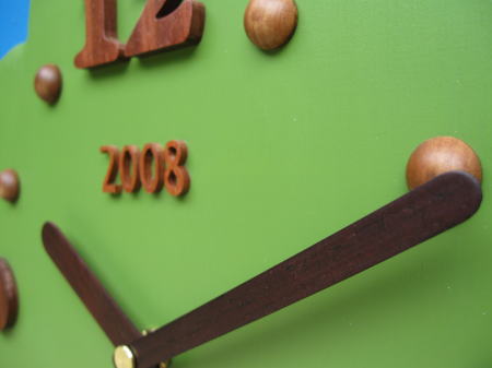 | 時計の針も木製です。 色は素材(ローズウッド)の色をそのまま利用しています。 |
