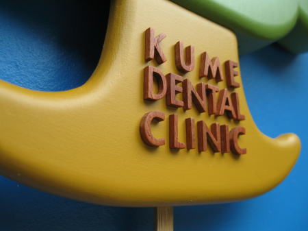 | 医院のロゴをそのまま利用しています。 ひとつひとつ糸鋸で切り抜き、手で磨き上げます。 |