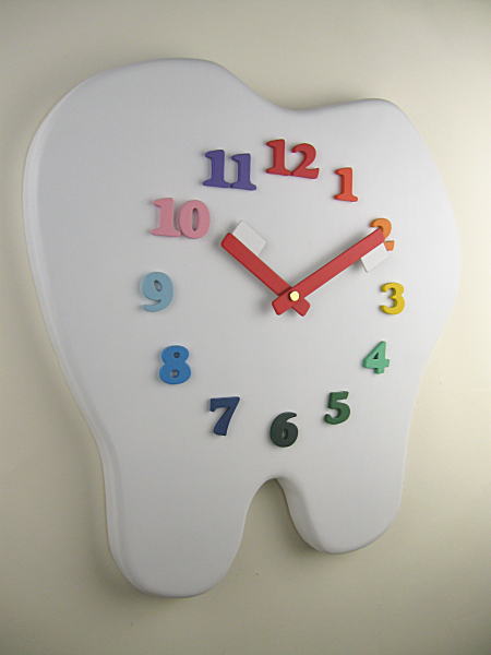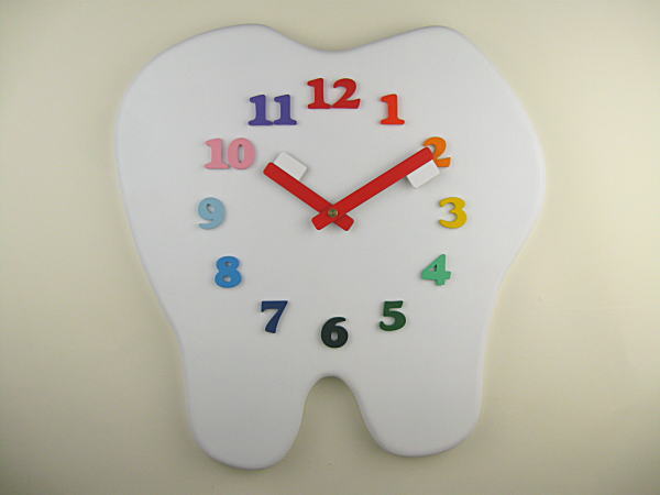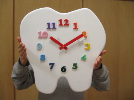 「歯科医院」様への開院祝いの「歯の形をした掛け時計」です。