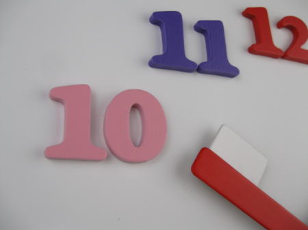 文字をカラフルに、針を赤い「歯ブラシ」の形にしたかわいいタイプです。