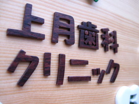 医院名の文字も木です。糸鋸で切り抜き、手で磨き上げて仕上げます。