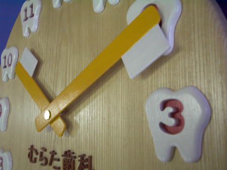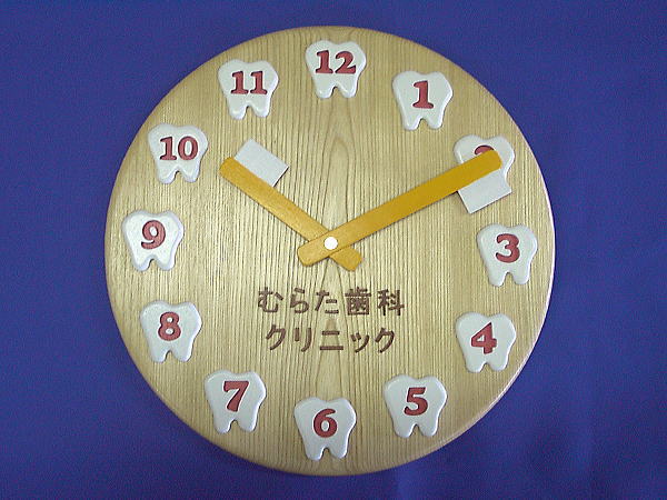 ■開院祝い:「むらた歯科クリニック」様への開院の祝い:文字盤が歯の形の掛け時計