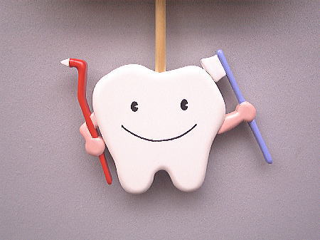 「歯ブラシ」と「ワンタフトブラシ」を持った歯のかたちの振り子です。