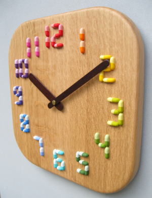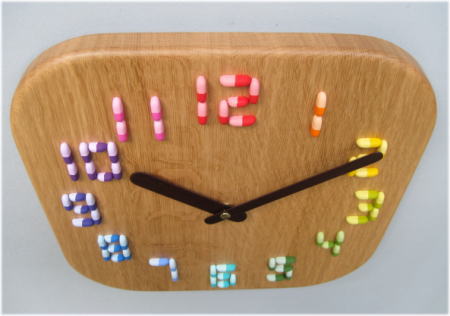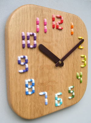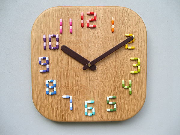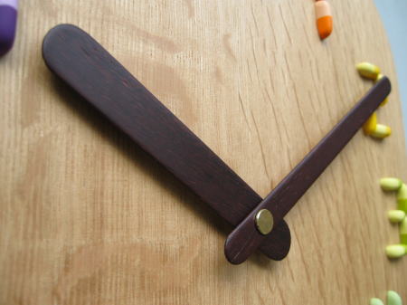 | 「通谷薬局」様への掛け時計です。 文字盤が「カプセルのくすり」で出来ています。 デザインアイデアは「通谷薬局」様より頂きました。 カプセルは実物大で合計【62ヶ】を使用しています。 小さいのですべてが手仕上げのため、ひとつ仕上げるのに着色も含めると20分はかかります。 20分×62ヶで1240分、つまり約21時間使ったのですね。 見た目によらず大変苦労した作品でした。 でもとてもかわいいと思います。 |