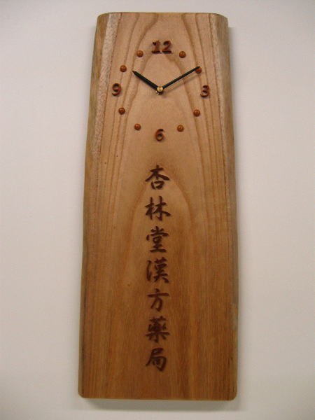 ■漢方薬局様へのお祝い【桐の耳付き板の掛け時計】■