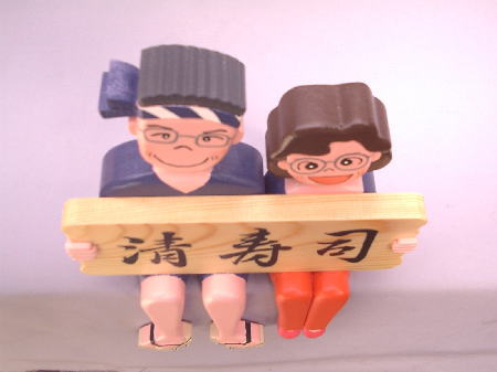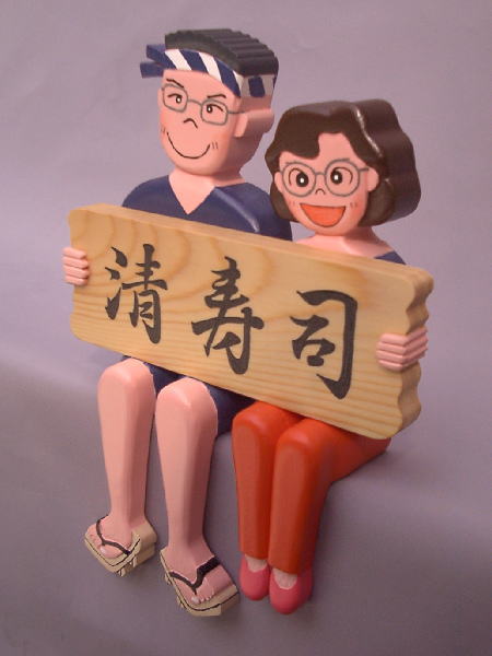 | ご子息より、ご両親へ「開業30周年」の記念の品です。 似顔絵の他にお店のキャラクターを使うと楽しい作品が出来上がります。 ご予算をお聞かせ頂ければ、それにあったデザインをご提案いたします(無料です) |