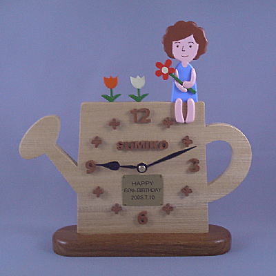 ■還暦祝い:ガーデニングがご趣味のお母様へジョロの形の置き時計■