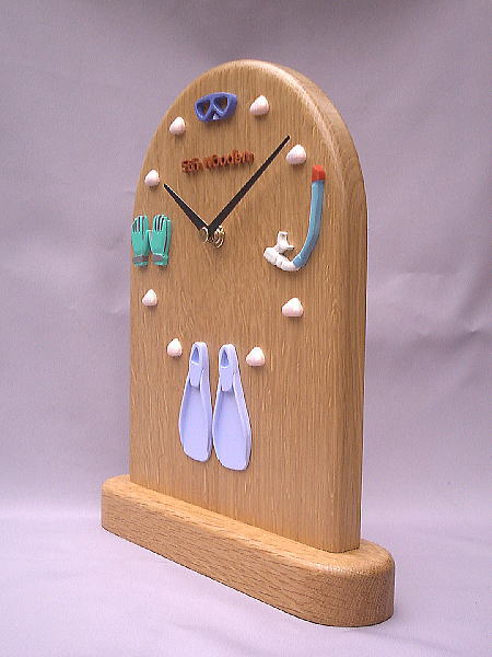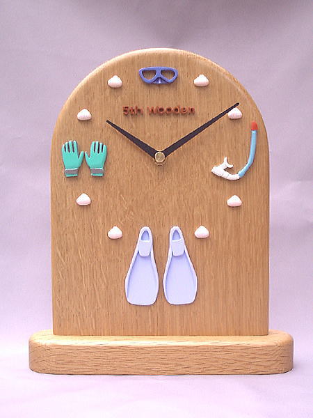 | 結婚5周年記念:木婚式の記念の時計です。 ご主人様がダイビングがご趣味ということで、ダイビングのグッズで 置き時計をお作りしました。 その他のご趣味でも対応できるタイプの時計だと思います。 趣味に生きがいを感じておられる男性には特に喜ばれています。 「マニア心」をくすぐると言ったところでしょうか。 |