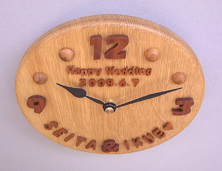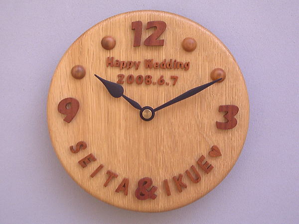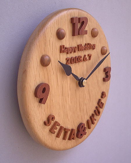 | 自由にメッセージを入れることの出来るシンプル時計です。 時計のムーブメントと針以外はすべて木製の掛け時計です。 ※時計のサイズ(直径)により針の形が変わります。 |