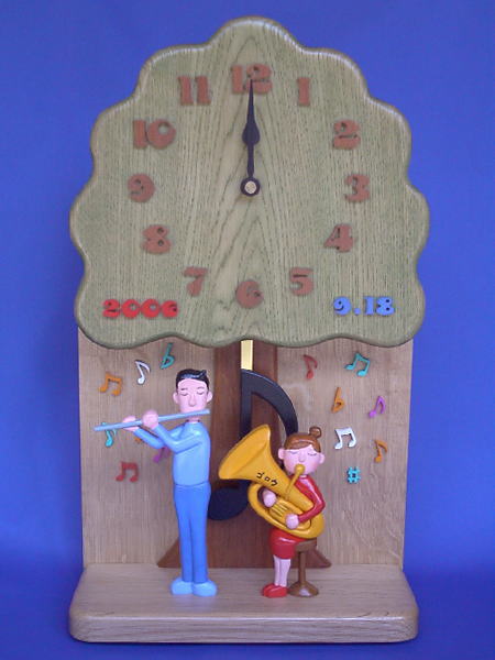 ■結婚祝い:「フルート」と「チューバ」を演奏するふたりの振り子時計■