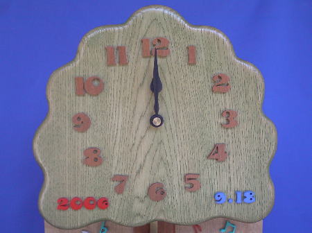 時計のムーブメントと針以外はすべて木製の振り子時計です。