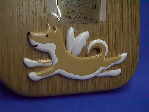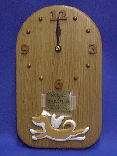 大好きだった「柴犬」を入れた「結婚祝」の置き時計です。