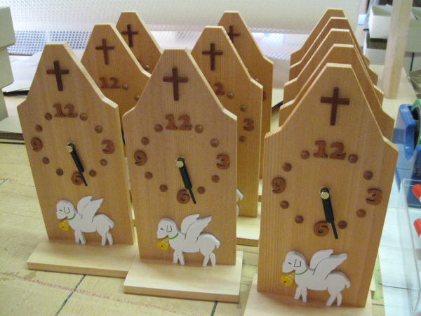 ■「こひつじ幼稚園」様の卒園記念品3【教会とひつじの置き時計】■