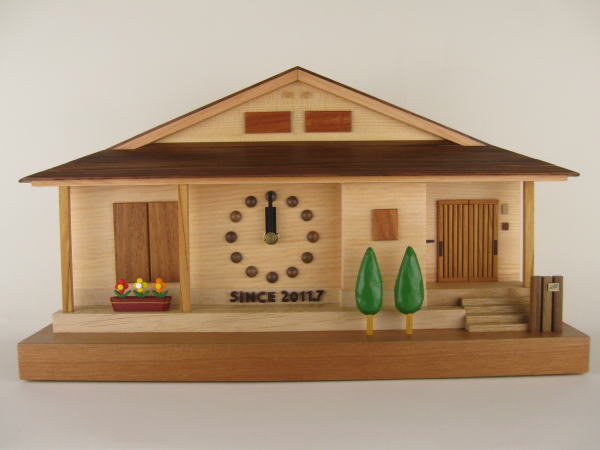 新築祝いの新築のお宅と同じ形の木の時計です。 【家型時計:vol.116】