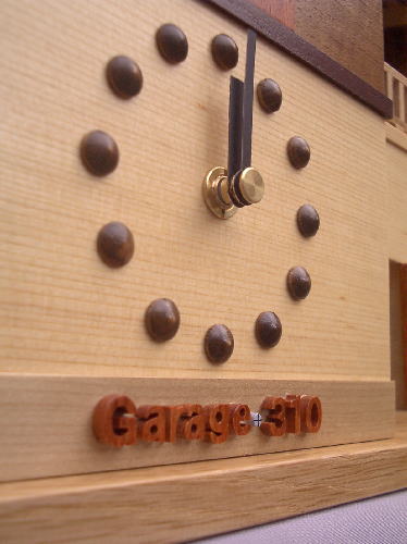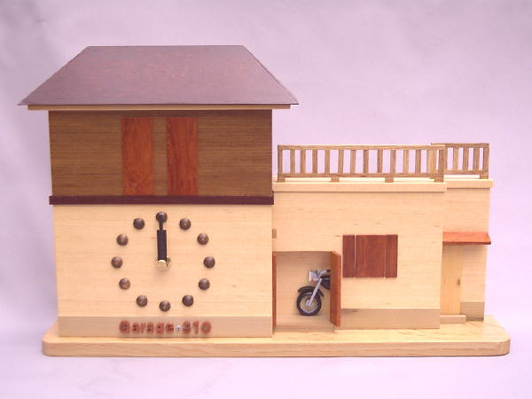 | 「Garage・310」様はバイク屋さんです。 時計の機械以外は全て木製の時計です |
