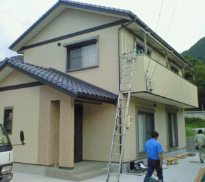 | 玄関は家の顔です。左側の突起はポストです。 |