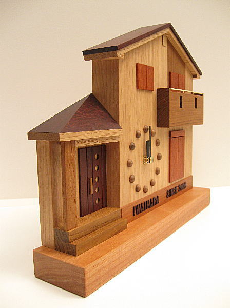 | 新築の家の外観をそのまま時計にしています。 【新築のお祝い品】 【新築の記念品】として大変好評を頂いております。 その方のためだけに作られた世界でひとつの贈り物(プレゼント)です。 新築の家の写真・図面からお作りすることができます。 詳しくは【家型時計のご注文方法】をご覧下さい。 時計の機械以外はすべて木製の、ひとつひとつ手作りされた世界でひとつの贈り物です。 |