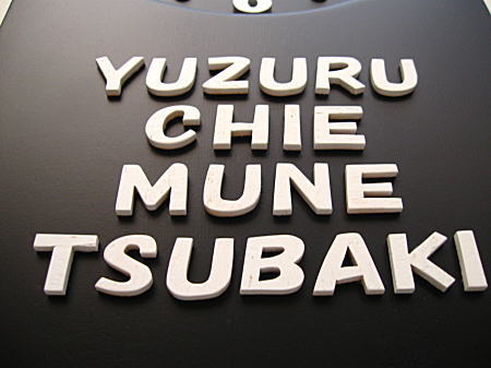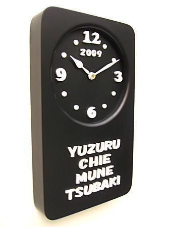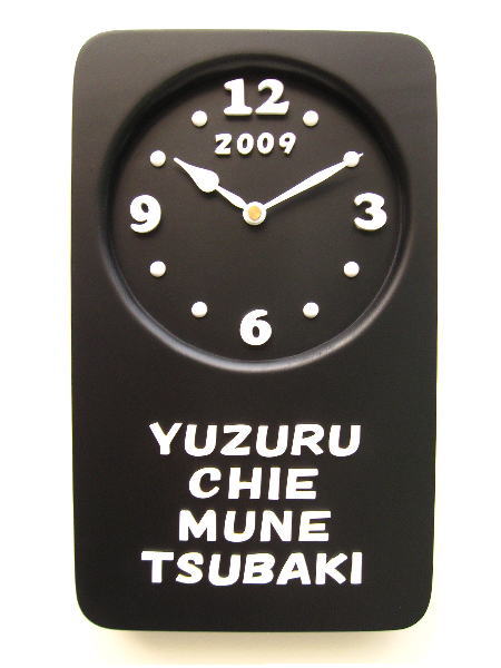 | 家族のお名前をお入れした掛け時計です。 「色」「字体」「形」は自由にアレンジ出来ます。 |