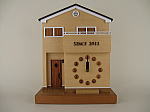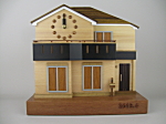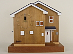 | 新築の家の外観をそのまま時計にします。 「新築祝い」「新築記念」の世界でひとつの贈り物です。 時計の機械以外全て木製です。 家型時計以外の新築祝いはこちらをご覧ください |