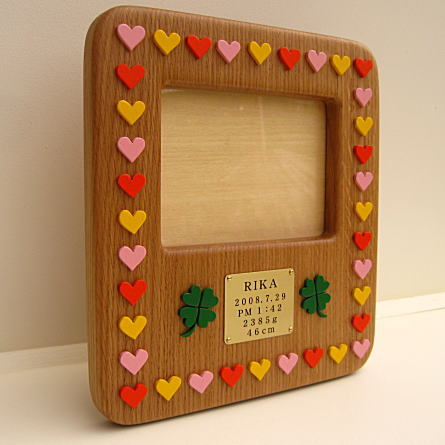 ■1歳のお誕生日の贈り物:「ハート」と「四葉のクローバー」のフォトフレーム■