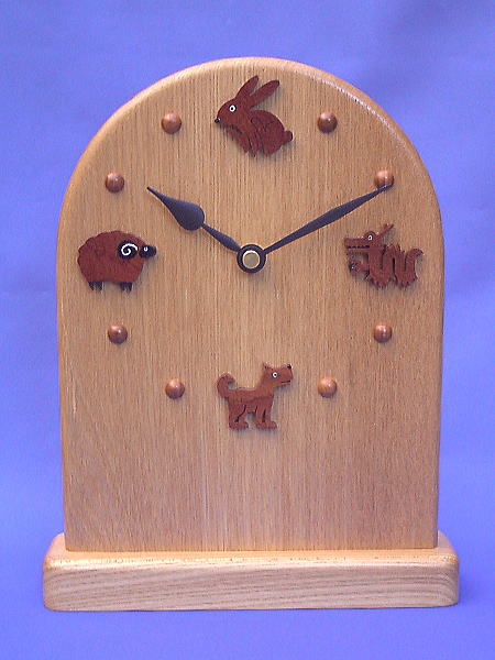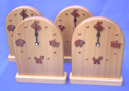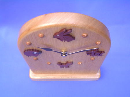 | ご家族の「干支」を使った木製の置き子時計です。 お子様の成長と共に時を刻む温もりのある時計です。 時計のムーブメントとプレート以外はすべて木製です。 |