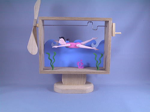 風の力でプロペラが回り、両手両足を上下に動かします。
