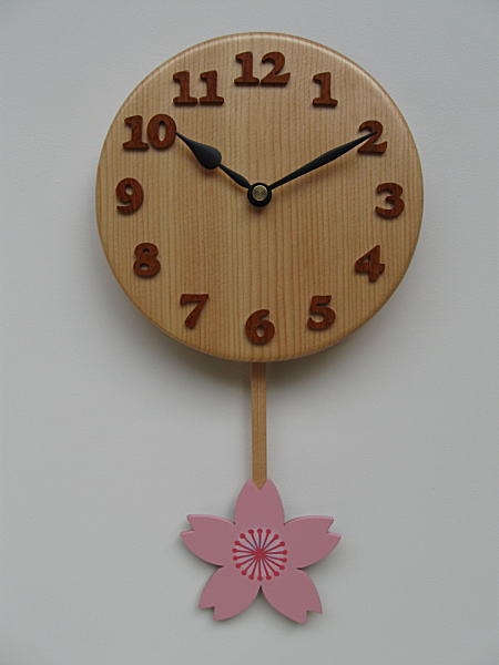 | 幼稚園の「クラス名」の【桜(さくら)組】の【桜(さくら)】を振り子に使った卒園記念の振り子時計です。 園児様に贈るものではなく、保護者様から幼稚園様へお贈りする記念品です。 同園にはこの他に「13種類」の振り子時計をお作りしました。
