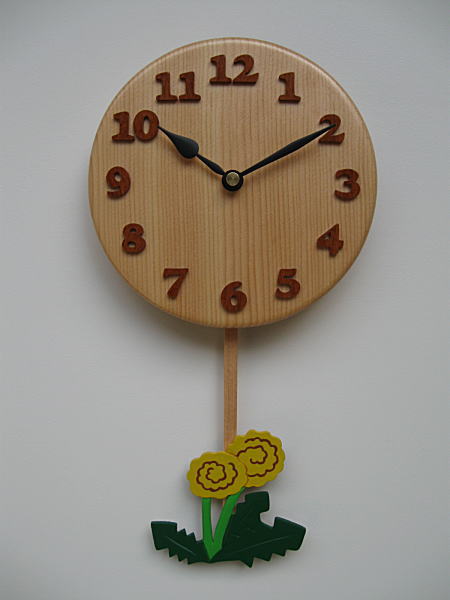 | 幼稚園の「クラス名」の【タンポポ組】の【タンポポ】を振り子に使った卒園記念の 振り子時計です。 これは園児様に贈るものではなく、保護者様から幼稚園様へお贈りする記念品です。 同園にはこの他に「13種類」の振り子時計をお作りしました。