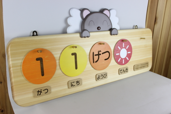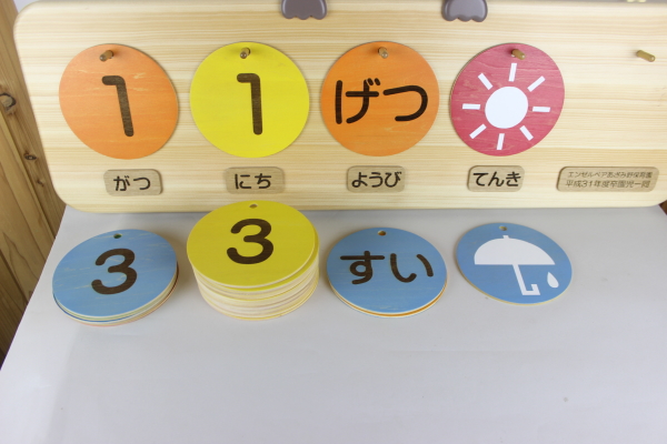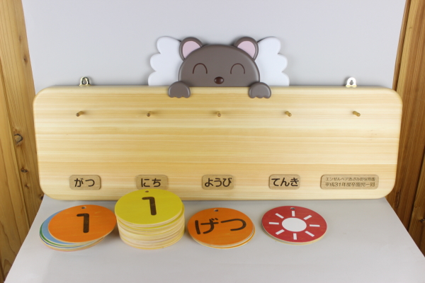 | 園様のキャラクターをお入れした大きい「万年カレンダー」です。 サイズは横幅「84cm」。プレートの直径「14cm」です。 保護者様方から園様への卒園記念品です。 |